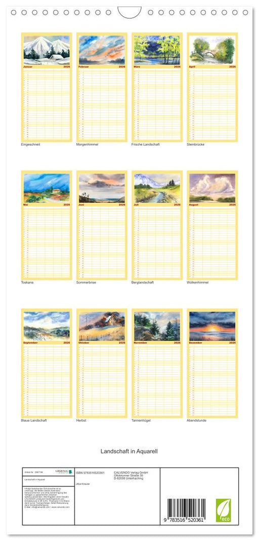 Landschaft in Aquarell (CALVENDO Familienplaner 2026)