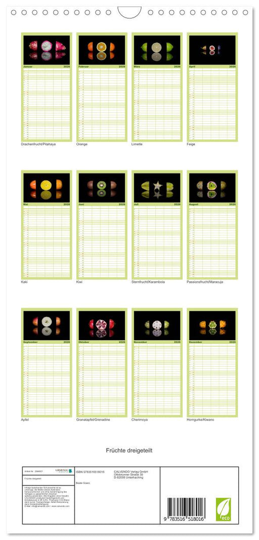 Früchte dreigeteilt (CALVENDO Familienplaner 2026)