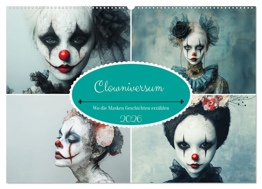 Vollständige Details anzeigenClowniversum - Wo die Masken Geschichten erzählen (CALVENDO Wandkalender 2026)