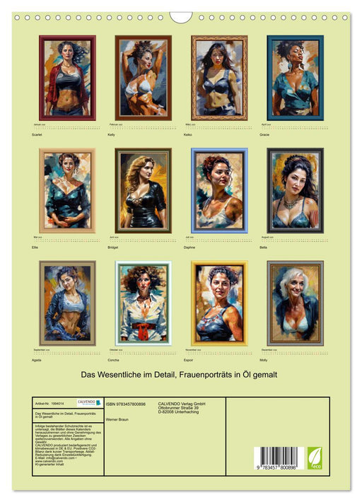 Vollständige Details anzeigenDas Wesentliche im Detail, Frauenporträts in Öl gemalt (CALVENDO Wandkalender 2026)