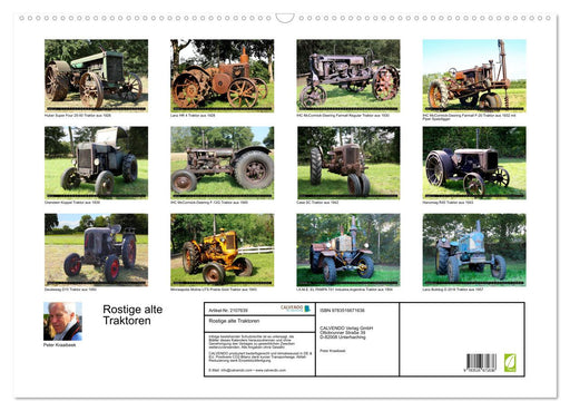 Traktor-Ikonen der Landwirtschaft mit Rost und Patina. (Monatskalender, 14 Seiten) Rostige alte Oldtimer-Traktoren der Jahre 1928 bis 1957 – das i...