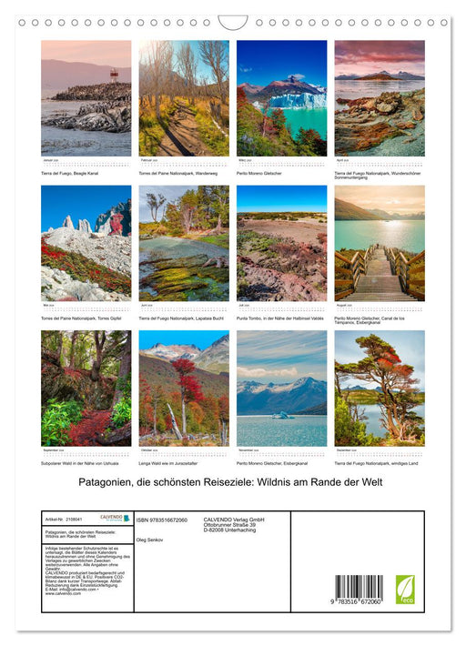 Vollständige Details anzeigenPatagonien, die schönsten Reiseziele: Wildnis am Rande der Welt (CALVENDO Wandkalender 2026)