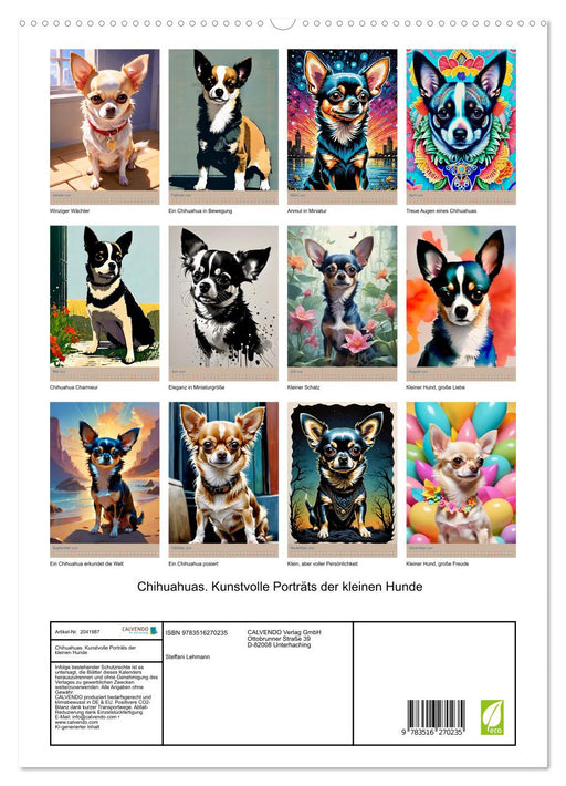 Vollständige Details anzeigenChihuahuas. Kunstvolle Porträts der kleinen Hunde (CALVENDO Premium Wandkalender 2026)