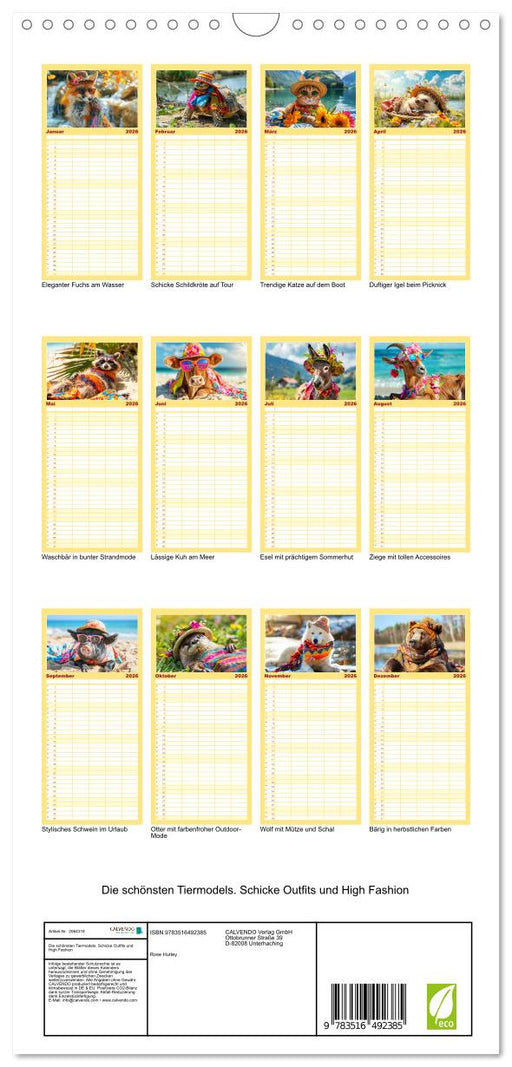 Vollständige Details anzeigenDie schönsten Tiermodels. Schicke Outfits und High Fashion (CALVENDO Familienplaner 2026)