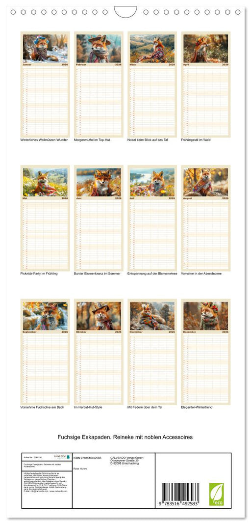 Vollständige Details anzeigenFuchsige Eskapaden. Reineke mit noblen Accessoires (CALVENDO Familienplaner 2026)