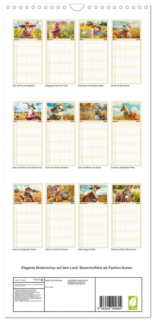 Vollständige Details anzeigenElegante Modenschau auf dem Land. Bauernhoftiere als Fashion-Ikonen (CALVENDO Familienplaner 2026)