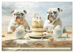 Juli: Brav und gesittet sitzen die Hunde am gedeckten Tisch