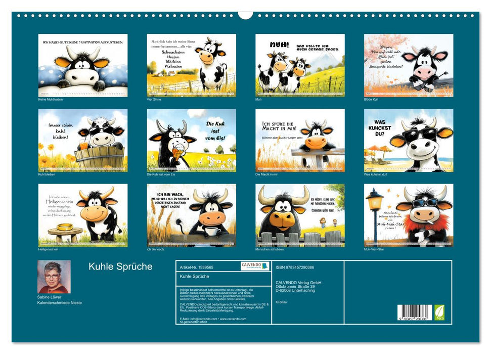 Hier kommt der ultimative Spaß für das ganze Jahr! 12 Monate voller kuhler Sprüche und lustiger KI-Bilder rund ums Rindvieh. Egal, ob du ein Kuh-Fan bist oder einfach nur einen Lacher brauchst, dieser Kalender bringt dich garantiert zum Schmunzeln. Perfekt zum Verschenken oder Selbstbehalten. Dieser qualitativ hochwertige Kalender gehört zur exklusiven CALVENDO Gold-Edition.