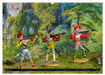 September: Fahnenträger und Kämpfer mit Schwert und Lanze