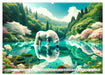 Mai: Einhorn am See: Ein ruhiges Einhorn genießt das klare Wasser eines idyllischen Sees.