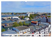 Mai: Blick vom Warnemünder Leuchtturm über die Häuser des Ostseebades mit Altem Strom, Warnow und Hohe Düne