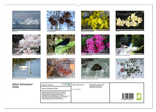 Zitate von A. Schweitzer mit Naturfotografien (Monatskalender, 14 Seiten) Albert Schweitzer (1875 bis 1965) war zunächst Theologe, bevor er noch e...