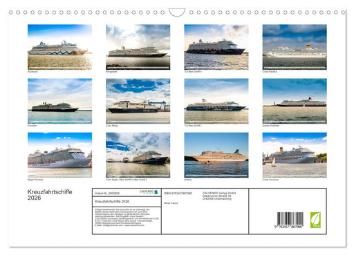 Vollständige Details anzeigenKreuzfahrtschiffe 2026 (CALVENDO Wandkalender 2026)