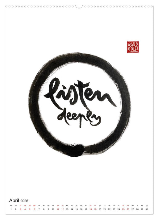 Vollständige Details anzeigenZen Art Kalligraphie inspiriert von Zen-Meister Thích Nhất Hạnh (CALVENDO Wandkalender 2026)