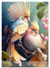 Oktober: Drei blau türkisfarbene Paradiesvögel zwischen filigranen Blüten
