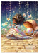 Dezember: Eine kleine Fee spielt mit Glühwürmchen und Schmetterlingen