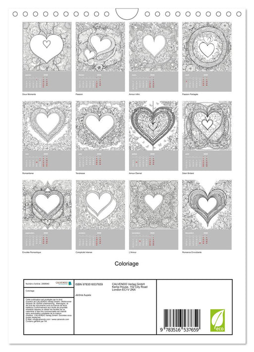 Vollständige Details anzeigenColoriage (CALVENDO Calendrier mensuel 2026)
