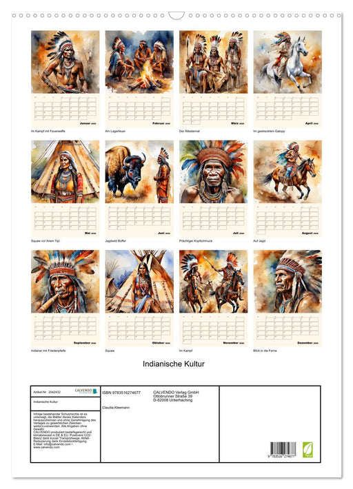Nordamerikanische Indianer im Portrait - Aquarelle der KI (Monatskalender, 14 Seiten) Die indianische Kultur umfasst die Traditionen, Bräuche, Spr...