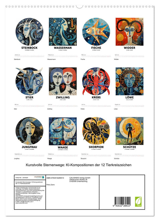 Vollständige Details anzeigenKunstvolle Sternenwege: KI-Kompositionen der 12 Tierkreiszeichen (CALVENDO Premium Wandkalender 2026)