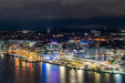 Ein nächtlicher Blick von oben auf den Kieler Bootshafen. Die Lichter der Stadt spiegeln sich im Wasser und tauchen die Szenerie in eine fast magische Atmosphäre. Maritimes Flair und urbanes Leben verbinden sich hier zu einem unvergesslichen Moment.