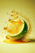 In einem surrealen Tanz aus Farbe und Form wirbelt diese leuchtende Frucht durch den Raum. Sie ist nicht nur lecker, sie ist ein echter Showstar. Sie posiert, wirbelt, glitzert – und machen jeden Monat zum kleinen Spektakel. Wer hätte gedacht, dass Vitamine so viel Temperament haben? Zwischen den wirbelnden Formen erheben sich verspielte Treppenstufen, die sich wie aus Fruchtfleisch geformt aneinanderreihen. Die Stufen führen scheinbar ins Nichts, oder vielleicht in eine süße Traumwelt, in der jede Bewegung ein Tropfen Geschmack ist.