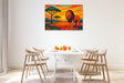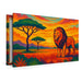 Majestätisch steht der Löwe in der untergehenden Sonne – der wahre Hüter der Steppe. Sein Blick trägt das Feuer Afrikas, seine Haltung die Ruhe des Königs. Die warmen Farbtöne von Orange, Gold und Rot verleihen dem Bild eine eindrucksvolle Tiefe und Energie. Es erzählt vom Mut im Herzen und der stillen Macht der Natur. Ein starkes, ausdrucksvolles Motiv für alle, die Stärke, Charakter und afrische Leidenschaft schätzen.