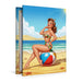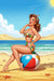Betrachten Sie unsere bezaubernde Strand-Schönheit, die in einem stilvollen Bikini vor der Kulisse einer sonnigen Küste posiert. Jedes Detail dieser Illustration fängt die ikonische Ästhetik der 50er Jahre ein – von der klassischen Pose über den eleganten Schnitt des Bikinis bis hin zum verführerischen Augenzwinkern.