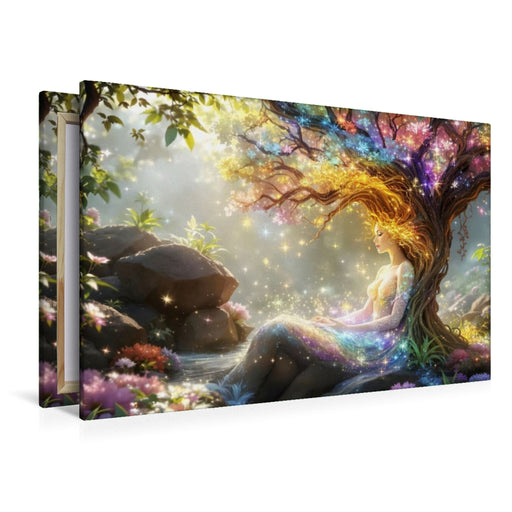 Premium Textil-Leinwand Einzelne Bäume am Bachrand