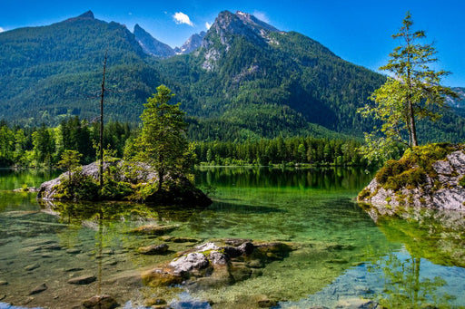 Premium Textil-Leinwand Obersee mit Fischunkelalm in der Ferne