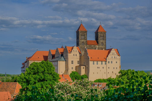Schloss und Stiftskirche Quedlinburg, gelegen an der Bode, ist mit 2.100 Fachwerkhäusern eine der größten Flächendenkmäler Deutschlands. Es hat ei...