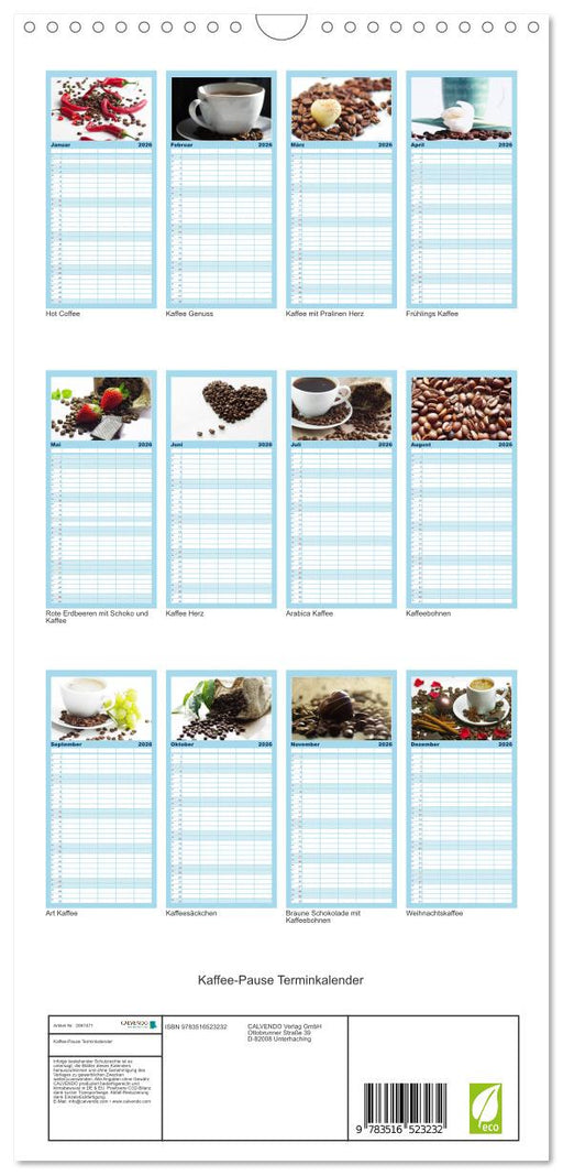 Vollständige Details anzeigenKaffee-Pause Terminkalender (CALVENDO Familienplaner 2026)