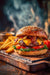 Premium Textil-Leinwand Burger, saftig, käsig & mit knusprigen Pommes