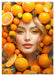 November: Portrait einer blonden Frau mit einer Kopfbedeckung aus Sanddorn und Mirabellen