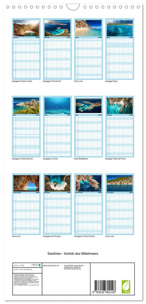 Vollständige Details anzeigenSardinien - Karibik des Mittelmeers (CALVENDO Familienplaner 2026)