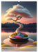 Juli: Ein Bonsaibäumchen mit Meer im Sonnenuntergang,
