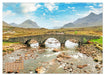 März: Sligachan Bridge, erbaut um 1820, die Steinbrücke bietet einen guten Aussichtspunkt auf die Black Cuillin-Berge, Sligachan River, Isle of Skye