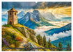 Juli: Der einsame vorgelagerte Wachturm lässt Überblick über das gesamte Gebirgstal zu.