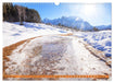Januar: Nachtfrost bildet bizarre Eisdecken auf dem Schmelzwasser