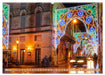 Mai: Festliche Straßenbeleuchtung und historische Gebäude in der Barock-Stadt Scicli, Madonna delle Milizie, Barockwinkel im Südosten Siziliens, Italien