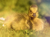 Dieses detailreiche Foto fängt die Magie eines sonnigen Frühlingsmorgens ein. Ein winziges, goldgelbes Gänseküken hat sich im weichen Gras niedergelassen und blickt neugierig in die Kamera. Die zarten Farben des Kükens und das sanfte Licht schaffen eine Atmosphäre der Ruhe und Harmonie. Jedes Detail ist mit unglaublicher Präzision eingefangen. Ein Meisterwerk der Naturfotografie, das die Schönheit und Zerbrechlichkeit des Lebens in einem einzigen Augenblick festhält.