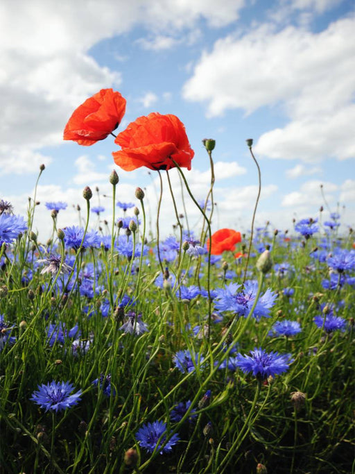 Mohnfeld mit Kornblumen und Himmel. Ein Motiv aus dem Kalender "Land Brandenburg im Wechsel der Jahreszeiten" von Anja Frost: Zu jeder Jahreszeit ...