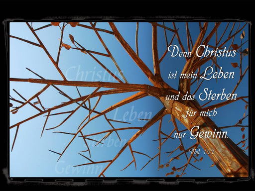 Bibelvers, aus dem Philipperbrief 1,21 Bei diesem Motiv wurde der Bibelvers aus dem Philipperbrief 1,21, "denn Christus ist mein Leben und das Ste...