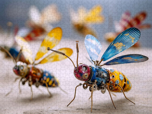 Fantastisches Flugwesen zwischen Natur und Technik Ein Sommertraum zum Puzzeln: Auf einer farbenprächtig erblühten Pflanze entfaltet sich ein fant...