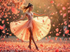 Diese zauberhafte Szene vereint Eleganz, Natur und eine Prise Magie: Eine anmutige Tänzerin bewegt sich im Einklang mit Licht, Jahreszeit und Landschaft – poetisch, ruhig und voller Ausdruckskraft.