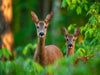 Zwei Rehe stehen still im grünen Frühlingswald, umgeben von frischem Laub und sanftem Licht. Die Rehgeiß und ihr Kitz verkörpern die Harmonie und Ruhe der Natur auf eindrucksvolle Weise. Dieses Bild fängt die zarte Beziehung zwischen Muttertier und Nachwuchs ein und zeigt die Schönheit heimischer Wildtiere in ihrer natürlichen Umgebung. Die authentische Szene spricht Jäger, Naturfreunde und Tierliebhaber gleichermaßen an und vermittelt die besondere Atmosphäre eines stillen Moments im Wald. Ob als dekoratives Naturmotiv oder als Inspiration für alle, die Wildtiere und den Zauber des Waldes schätzen – dieses Bild verbindet Gefühl, Natürlichkeit und detailreiche Fotokunst in perfekter Balance.