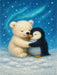 Eisbärjunges und Pinguin im Schneegestöber