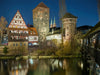 Dieses Motiv zeigt die Henkerbrücke, den Wasserturm und den Weinstadel in einer atmosphärischen Langzeitbelichtung – das Spiel aus Licht, Spiegelungen und stillem Wasser verleiht der historischen Kulisse eine fast magische Ruhe. Ein beeindruckendes Kunstwerk für alle, die Nürnbergs Altstadt lieben.