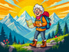 Dieses Motiv aus Oma rockt den Ruhestand - Lustiger Frauenkalender mit Humor zeigt eine aktive Oma auf Wanderung in den Bergen. Ein fröhliches Bild voller Naturverbundenheit und Humor – ideal für Puzzle und Leinwand.