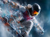 Snowboarderin in Action vor winterlicher Bergkulisse. Dynamisches Motiv im künstlerischen Stil - CALVENDO Foto-Puzzle'