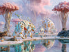 Entdecke KI-generierte Werke voller Fantasie, oft bevölkert von skurrilen Tieren. Runde biomorphe Gebäude mit schräger Drehung, in zarten Pastellfarben, getragen von traumhaften, fremdartigen Landschaften. Perfekt für Entdeckerseelen und Freunde der Fantasie, die Neues wagen und dem Unmöglichen begegnen wollen.